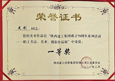 工會邢煜被評選為2020年度“集團優秀工會工作者”稱號,土建室史劍參選的美術作品榮獲集團成立70周年“職工書法、美術、攝影作品展”一等獎。
