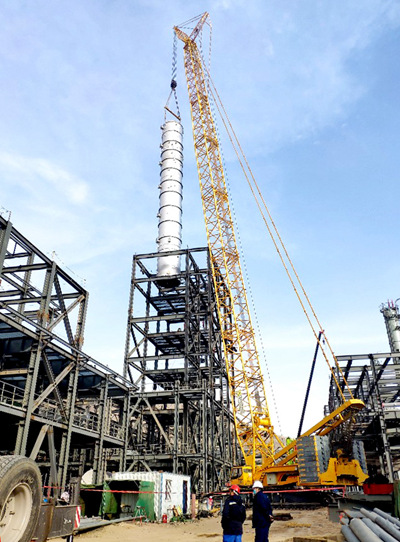 內(nèi)蒙古東景BDO項目丁二醇主裝置置汽提塔吊裝完成