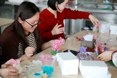 為增強慶祝活動的趣味性、挑戰性、協作性,組織開展手工制作“永生花”體驗活動。活動中,工作人員提前將材料進行分類準備好,并詳細講解“永生花”的制作流程和技巧。大家邊學邊交流經驗,以塑刀為針,以膠水為線,紛紛動起手來,傾力展示自己豐富的想象力和創造力,將工作中的細心、專心、耐心投入到“永生花”的制作上。經過個把小時,女職工們制作出了一朵朵精美的“永生花”,看著自己親手制作的作品,大家臉上洋溢著滿滿的成就感和幸福感。火熱的氛圍,也將此次“三八”節活動推向了高潮。
