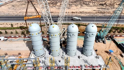 近日,由北京石油化工工程有限公司EPC總承包的陜西延長石油榆林凱越煤化50萬噸/年甲醇制乙醇項目取得重要進展。項目6臺核心反應器經過14天緊張施工,已全部順利完成安裝就位。
