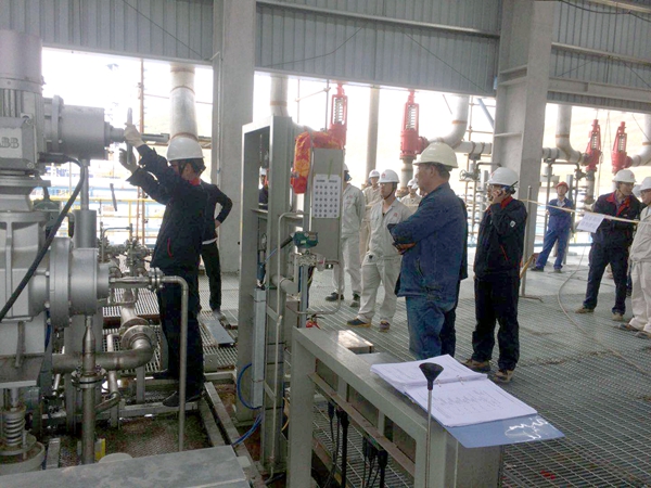 為順利完成兩臺(tái)壓縮機(jī)負(fù)荷試車(chē),項(xiàng)目組抽調(diào)技術(shù)骨干,配合業(yè)主對(duì)界區(qū)介質(zhì)(中壓蒸汽、氮?dú)狻x表風(fēng)、循環(huán)水等)運(yùn)行參數(shù)、提前啟動(dòng)汽輪機(jī)暖機(jī)、防喘振系統(tǒng)調(diào)試及模擬測(cè)試、一二三級(jí)系統(tǒng)管支架、儀表運(yùn)行及參數(shù)等環(huán)節(jié)逐一進(jìn)行了核查。在完成機(jī)組、系統(tǒng)、安全等相應(yīng)手續(xù)簽字后,下午16時(shí)35分,丙烯制冷壓縮機(jī)組開(kāi)始負(fù)荷試車(chē),經(jīng)過(guò)3個(gè)小時(shí)的平穩(wěn)運(yùn)行后,中控顯示系統(tǒng)溫度、壓力、機(jī)組振動(dòng)值均在正常運(yùn)行范圍內(nèi)。隨后,試車(chē)團(tuán)隊(duì)又開(kāi)始乙烯制冷壓縮機(jī)機(jī)組的負(fù)荷試車(chē)。晚上22時(shí)10分,該設(shè)備運(yùn)行平穩(wěn),各項(xiàng)參數(shù)運(yùn)行數(shù)據(jù)正常,試車(chē)一次成功。至此,ACO裝置同日完成了兩臺(tái)壓縮機(jī)試車(chē)任務(wù)。