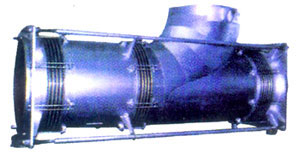 復(fù)式自由型膨脹節(jié) double untied expansion joint 復(fù)式自由型膨脹節(jié)由中間管所連接的兩個波紋管及結(jié)構(gòu)件組成,主要用于吸收軸向與橫向組合位移而不能承受波紋管壓力推力的膨脹節(jié)。 |