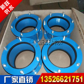 壓蓋式松套伸縮接頭兩端采用承插連接,安裝,拆卸簡便,壓蓋松套伸縮接頭適合連接輸送水,油,氣及顆粒粉狀物的鋼管,鑄鐵管,球墨鑄 鐵管,PVC管,ABS管等,壓蓋松套伸縮接頭在連接管子的同時能補償管道一定范圍內(nèi)的軸向位移及撓曲,偏心。